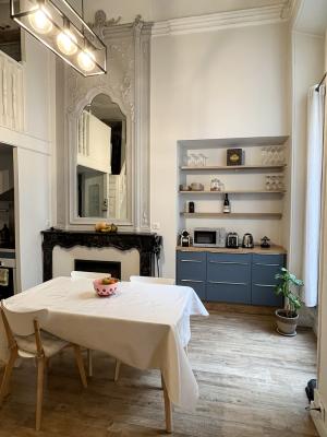 L'appartement se situe au premier étage d'un immeuble d’habitation cœur d'une piétonne d'Avignon, au calme absolu.