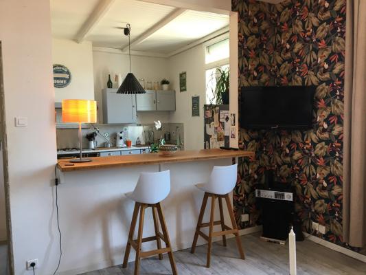 L'appartement se situe au deuxième étage d'une petite résidence à environ 150 mètres des remparts sur la ceinture Est, au calme.