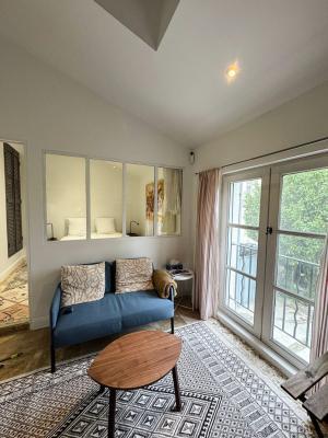 L'appartement se situe au premier étage d'une maison particulière à proximité de la porte saint Lazare, au calme.