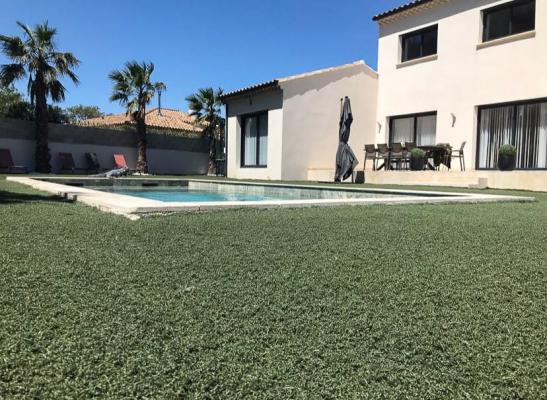 Stationnement : parking privé. Piscine : en dur. Dimensions : 10 par 5. Espace vert : jardin clos et arboré. Terrasse: plusieurs. Transat. Parasol. Tables et chaises. Portail électrique. Infos complémentaires : Plancha.