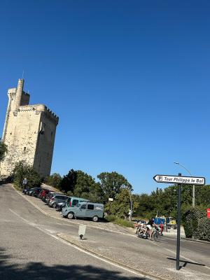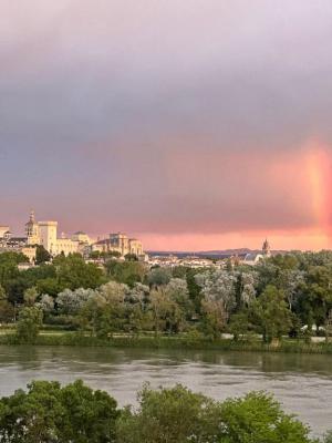 La maison se situe à proximité immédiate de la tour Philippe Lebel et bénéficie d'une vue panoramique sur le Rhône et Avignon.